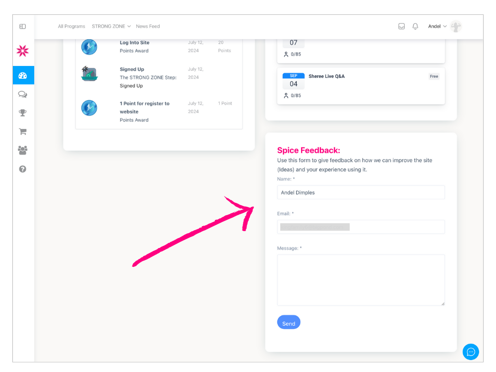 You’ll find the FEEDBACK form at the bottom of the DASHBOARD page.