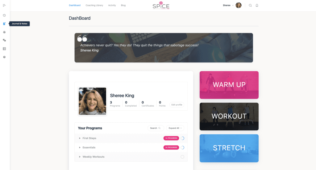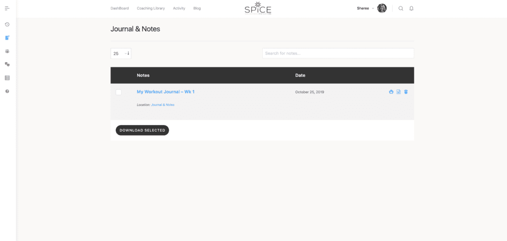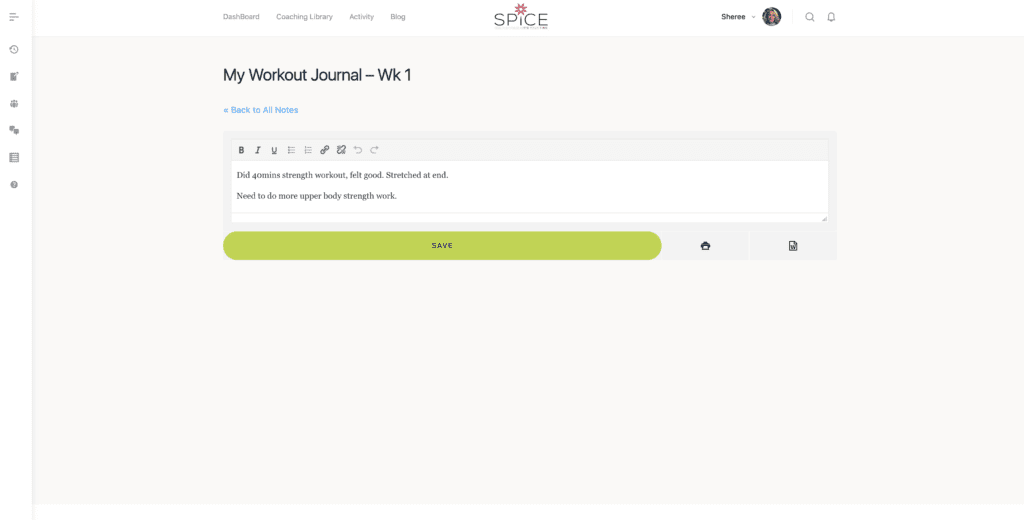 To access your journal, click the three small lines on the top left of the screen, then click ‘journal & notes’. From here you can read, edit, print, download or delete.