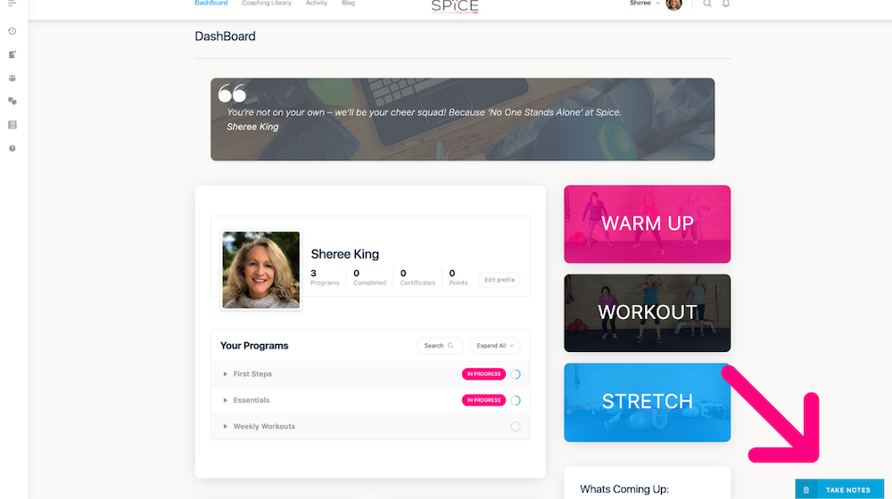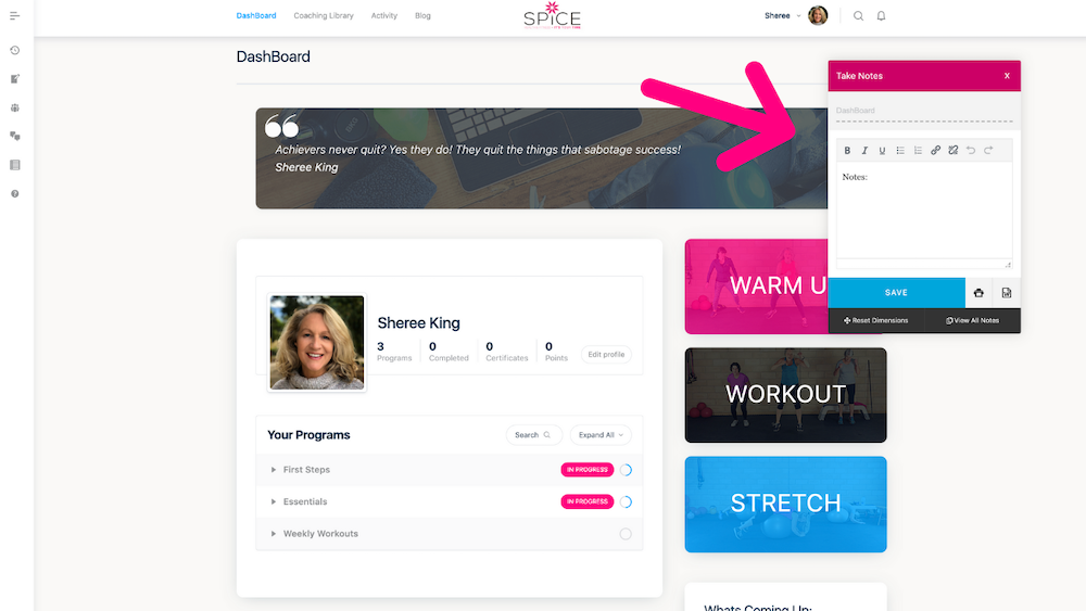 In the bottom right part of the screen on every page, you will see a pop-up box that says Take Notes. This is a private journal for you to store information on your current level and ability, and to slowly observe your progress over time.