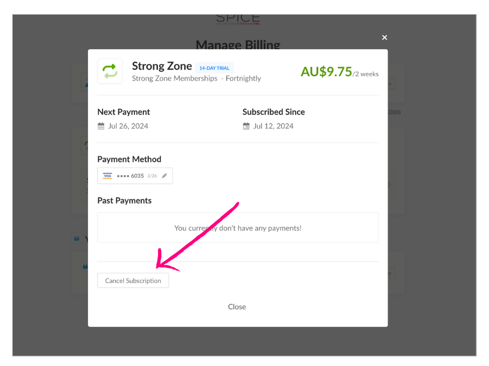 - You’ll be taken to the spicefitness.spiffy.co/manage page