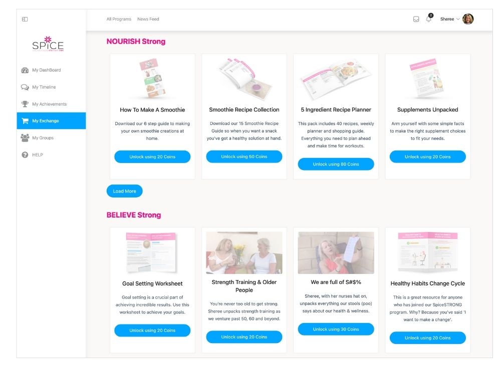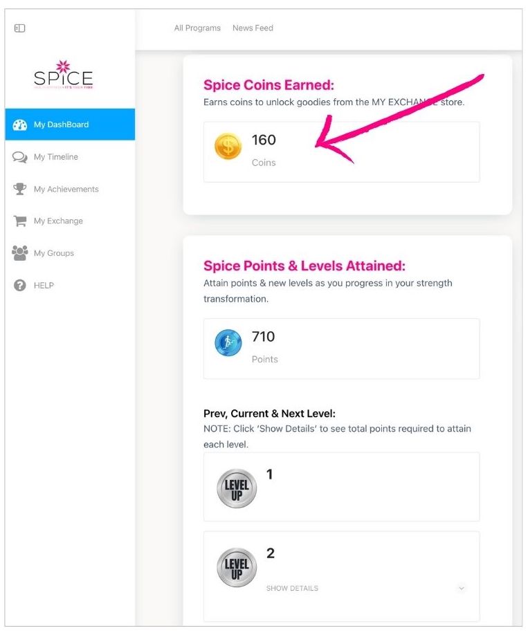 Coins are the result of consistent step-by-step actions in using ALL the tools, challenges, programs, groups etc within the SpiceSTRONG Online site to progress and empower your Strength Transformation.