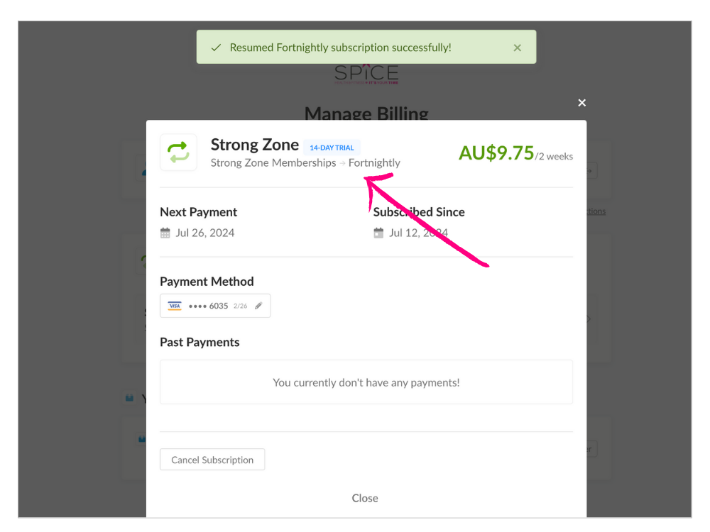 - You’ll be taken to the spicefitness.spiffy.co/manage page