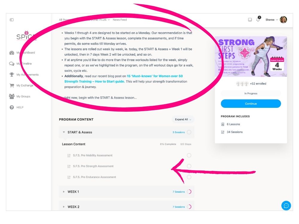 - When you’ve finished the final week, take time to complete the assessments and see your strength transformation improvement.