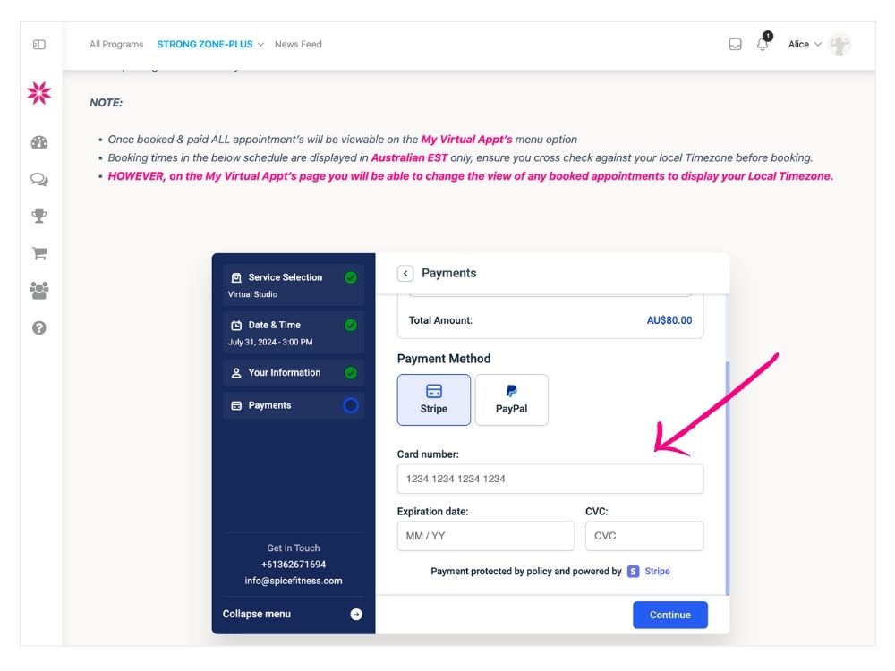 - Process payment and Click CONTINUE button.