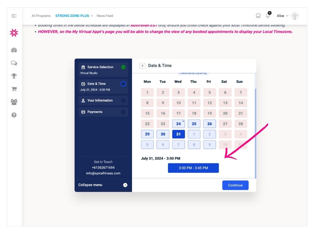 - Select the Day & Time that best works.