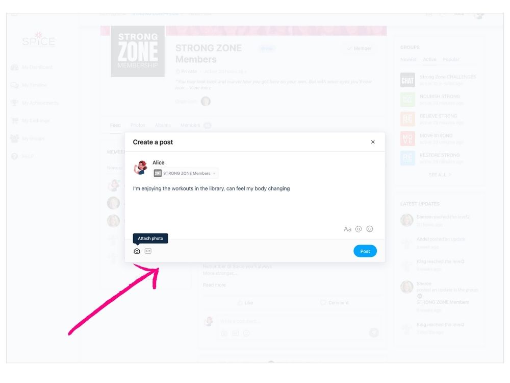 - When making a comment you’ll notice you can attach a photo, gifs along with formatting, tag someone and emojis.