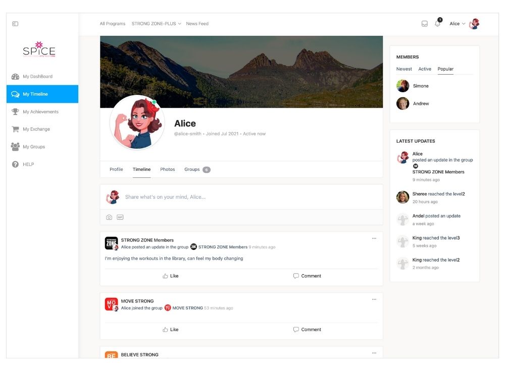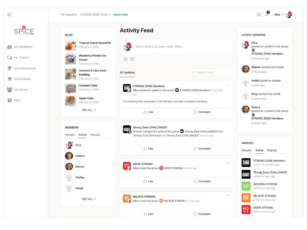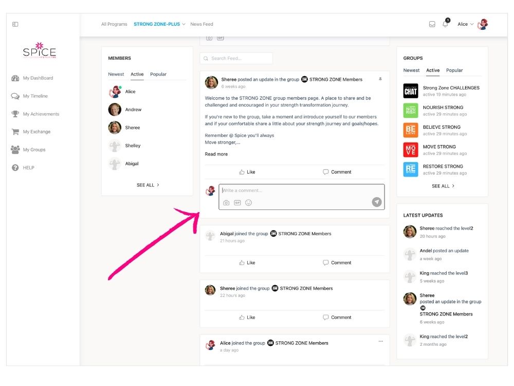 Comments, likes new comment posts can be easily made within all 3 of these areas.