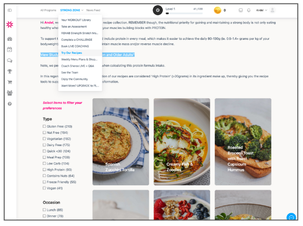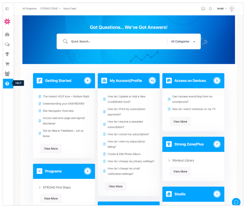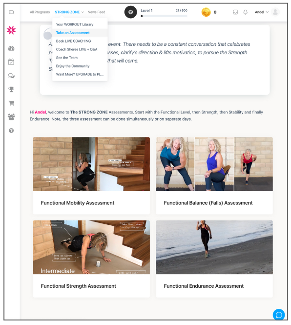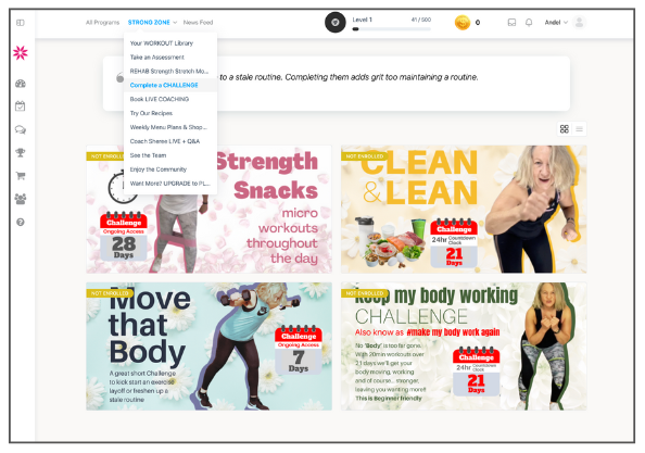 From the Dashboard you’ll be able to launch any programs, challenges that you are enrolled in or progressing through, be they purchased or part of the STRONG ZONE subscription.