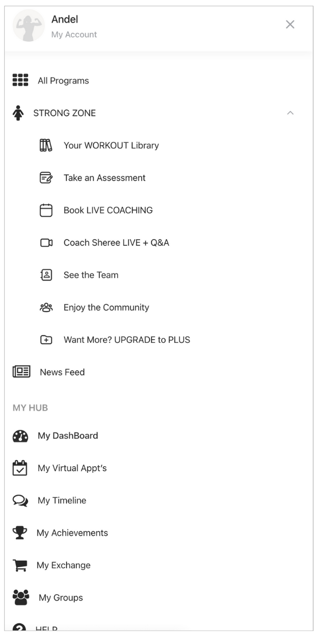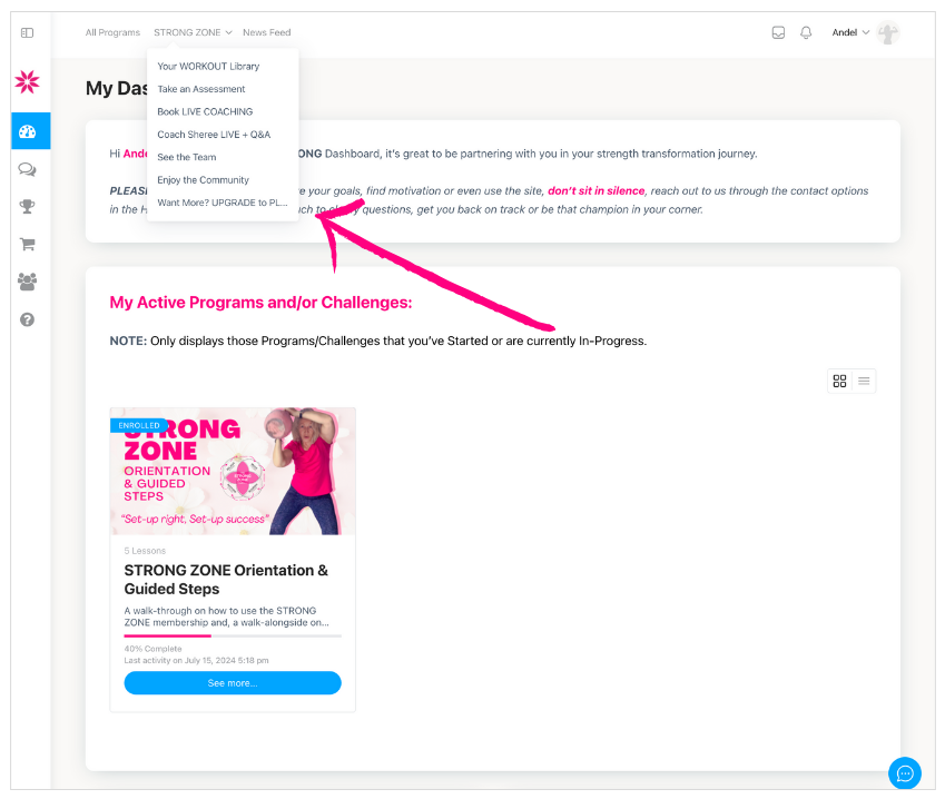 Hover over the STRONG ZONE navigation item to open up ALL menu options within.