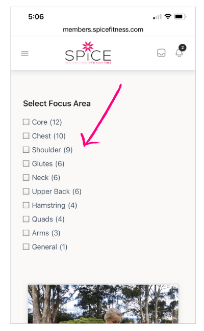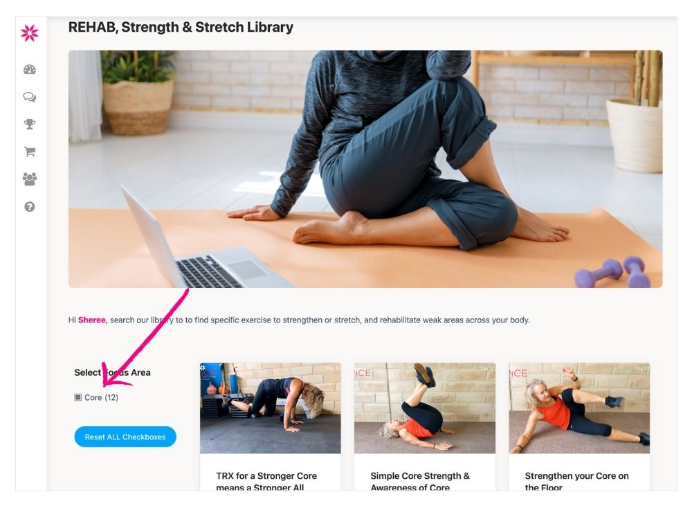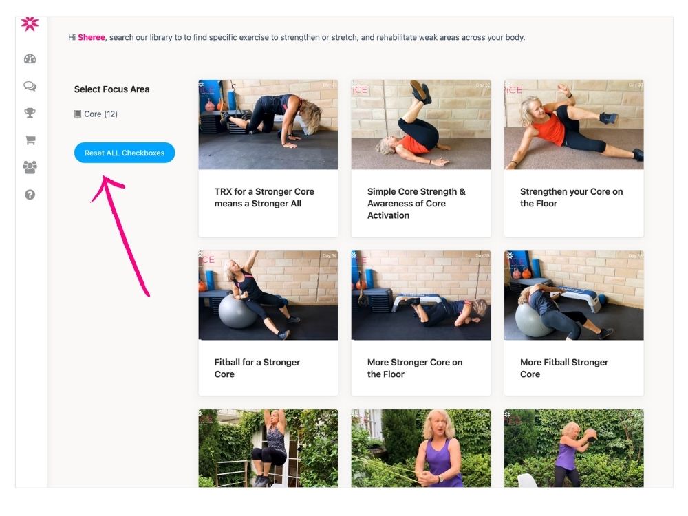 Note: At any point you can RESET the check boxes by clicking the “Reset ALL Checkboxes” button and all the checkboxes will be displayed along with the full workout library list..